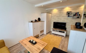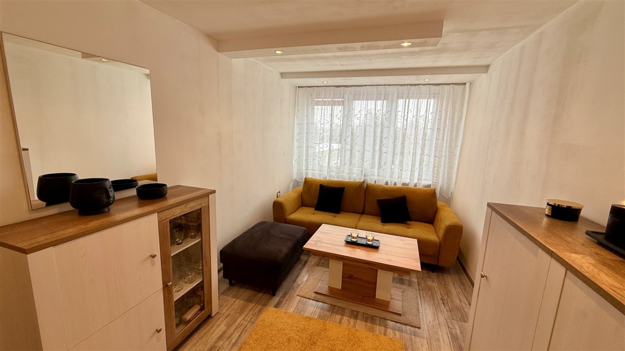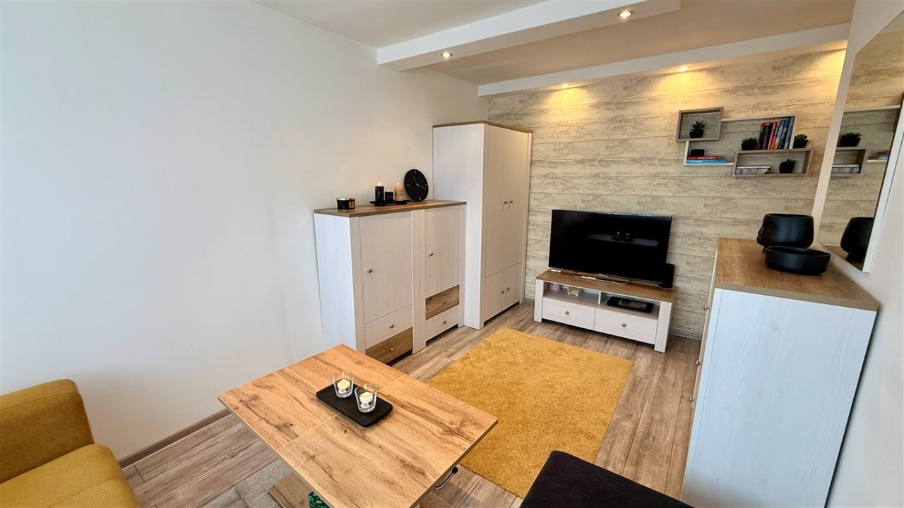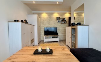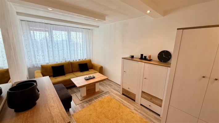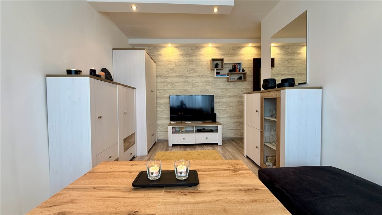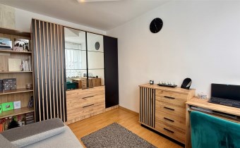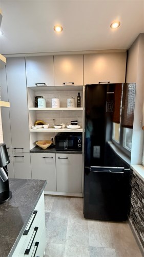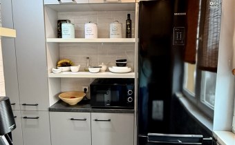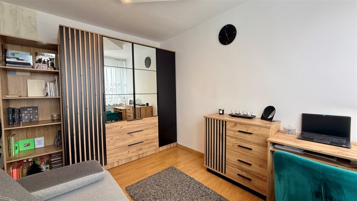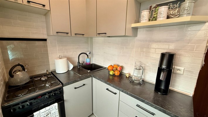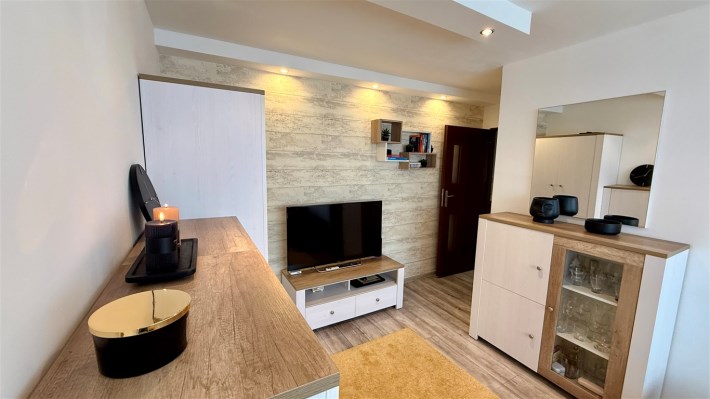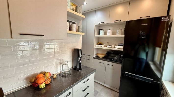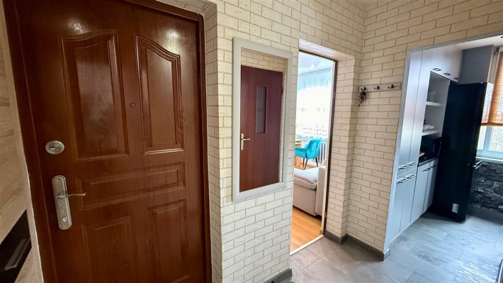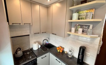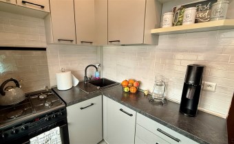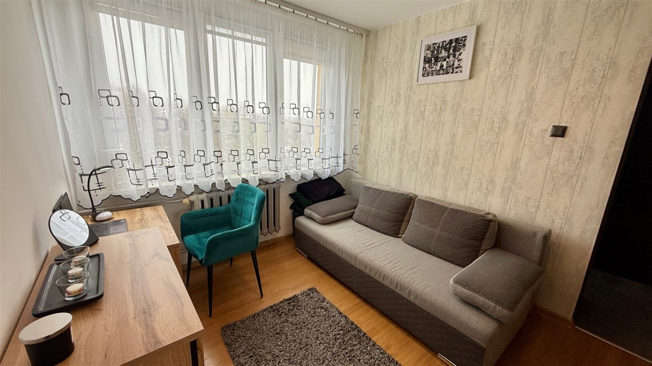 Umeblowanie i wyposażenie widoczne na zdjęciach w kuchni (meble, zmywarka, lodówka, kuchenka), pokój mały (szafa, rozkładana kanapa), całe umeblowanie przedpokoju - może pozostać w cenie nieruchomości.