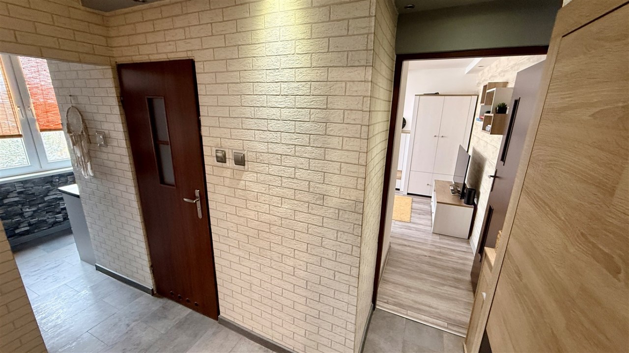 Dwa pokoje w układzie niezależnym, kuchnia widna, przedpokój, łazienka razem z WC. Mieszkanie o powierzchni użytkowej 38,60 mkw.,