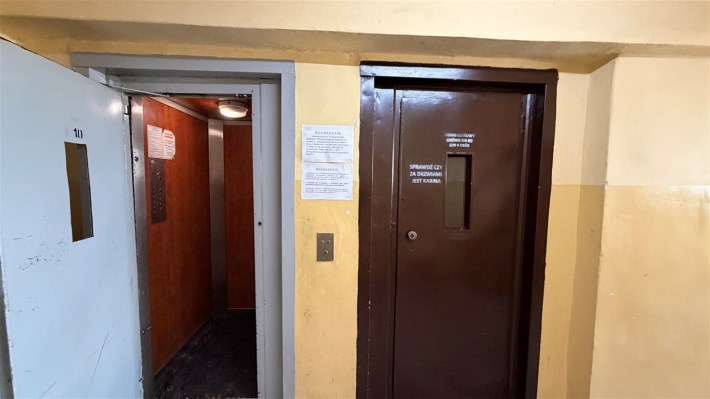 Blok po termomodernizacji, domofon, dodatkowo zamykany korytarz na piętrze.